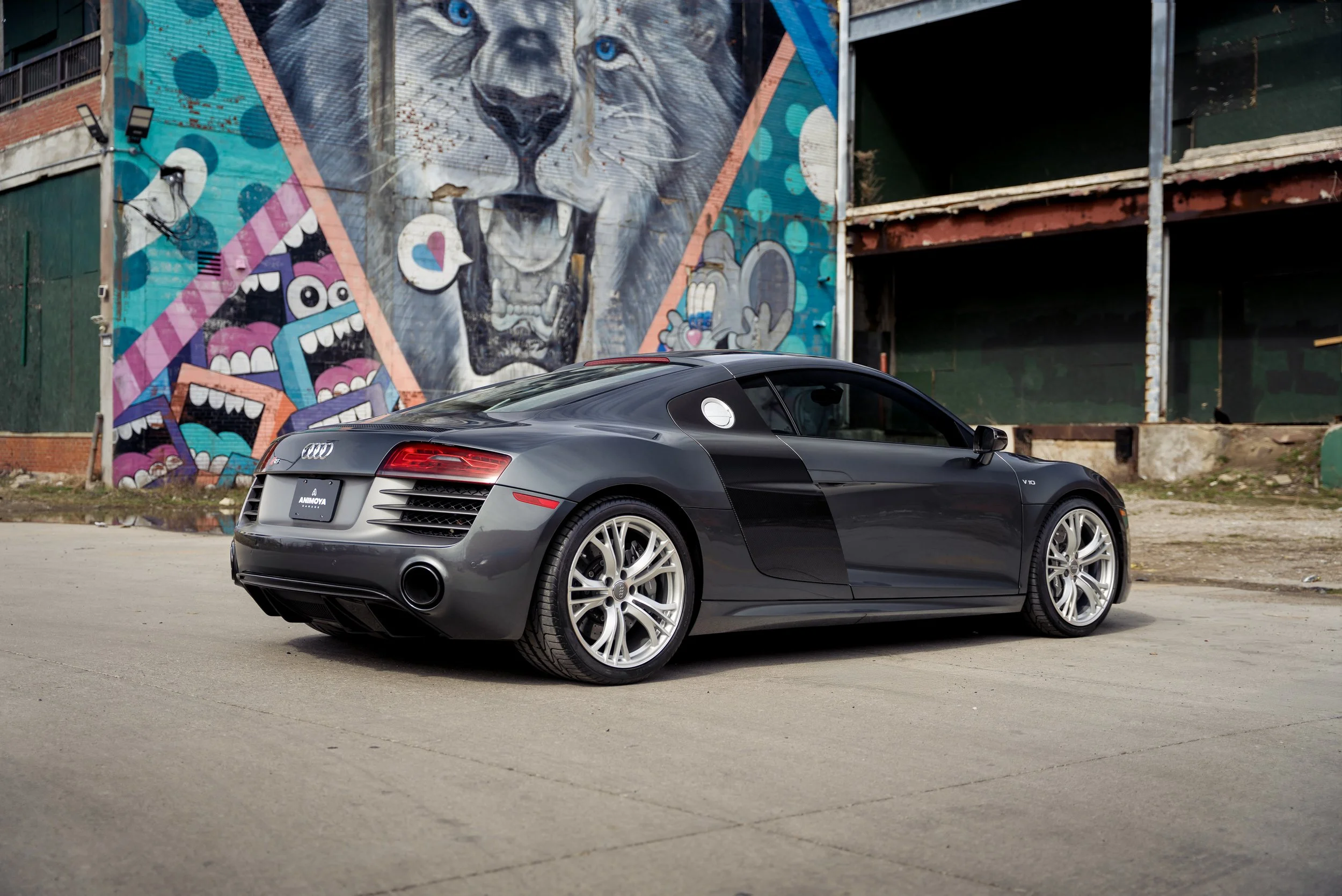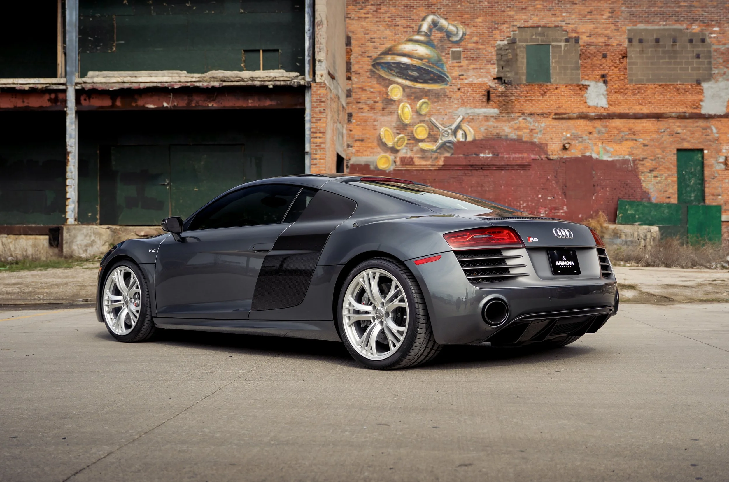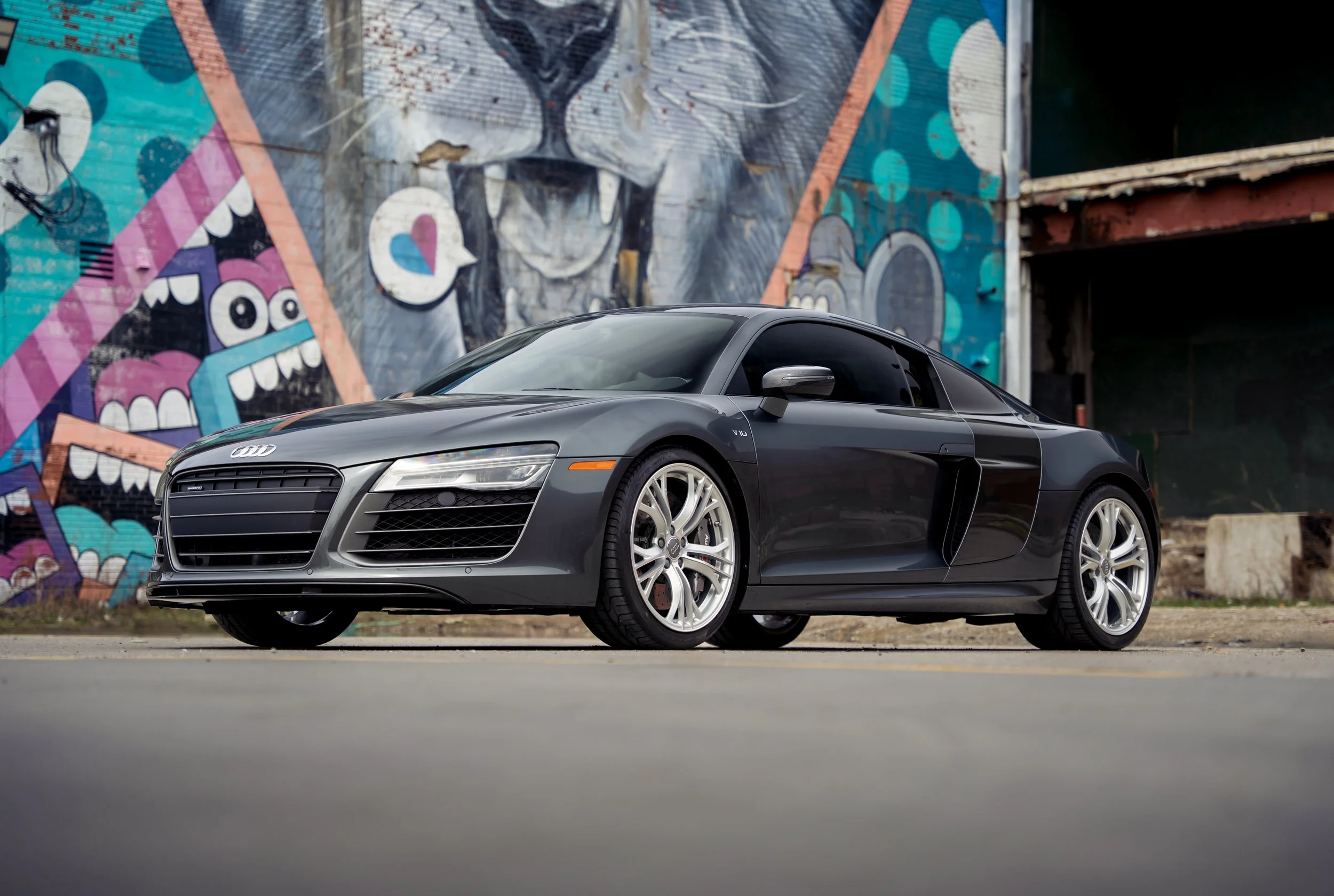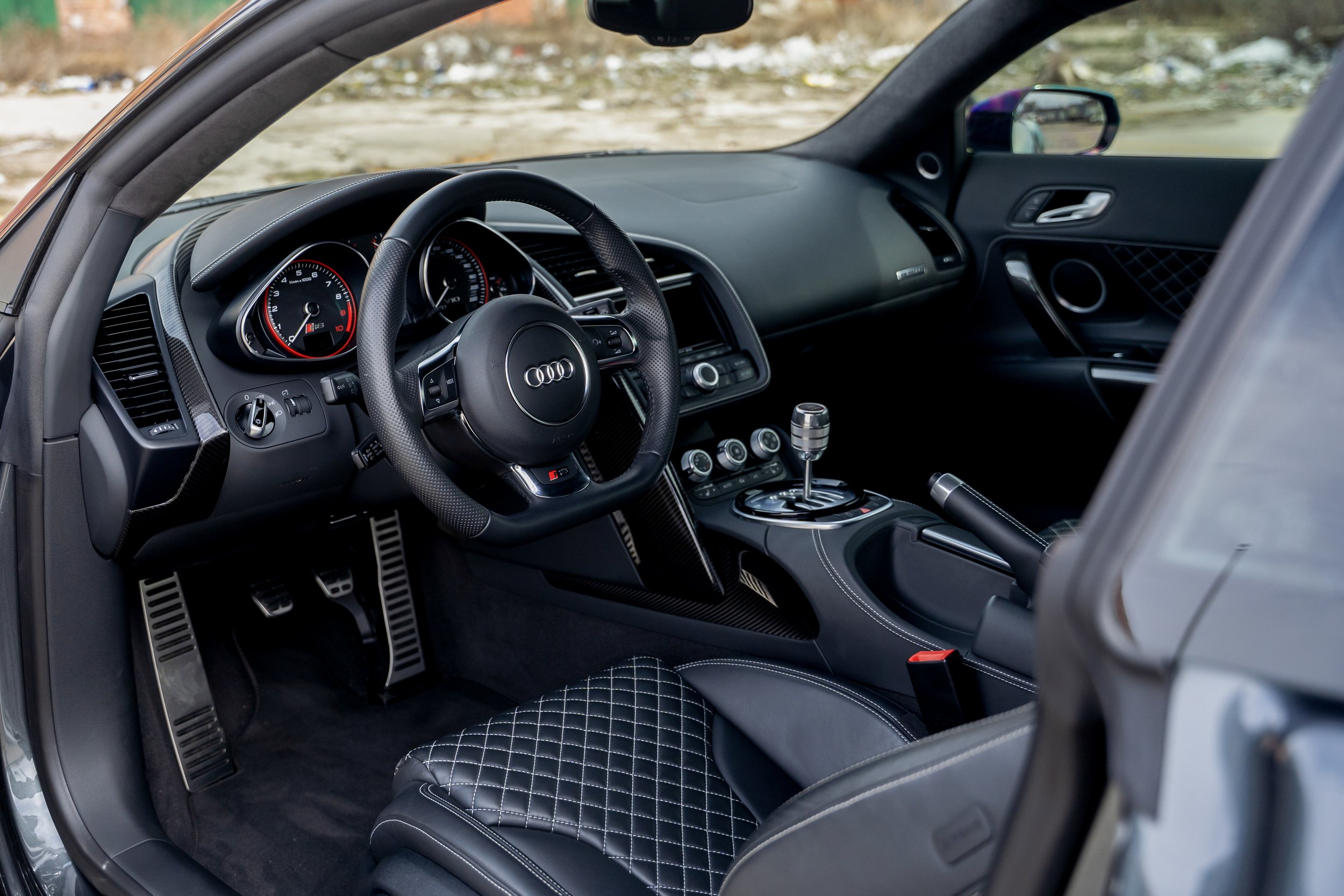 The exceptionally rare 2015 Audi R8 V10 Plus, presented here by Animoya Garage, is the only R8 finished in Daytona Grey Pearl over a Black interior as well as one of 8 examples produced with a 6-speed gated manual transmission.