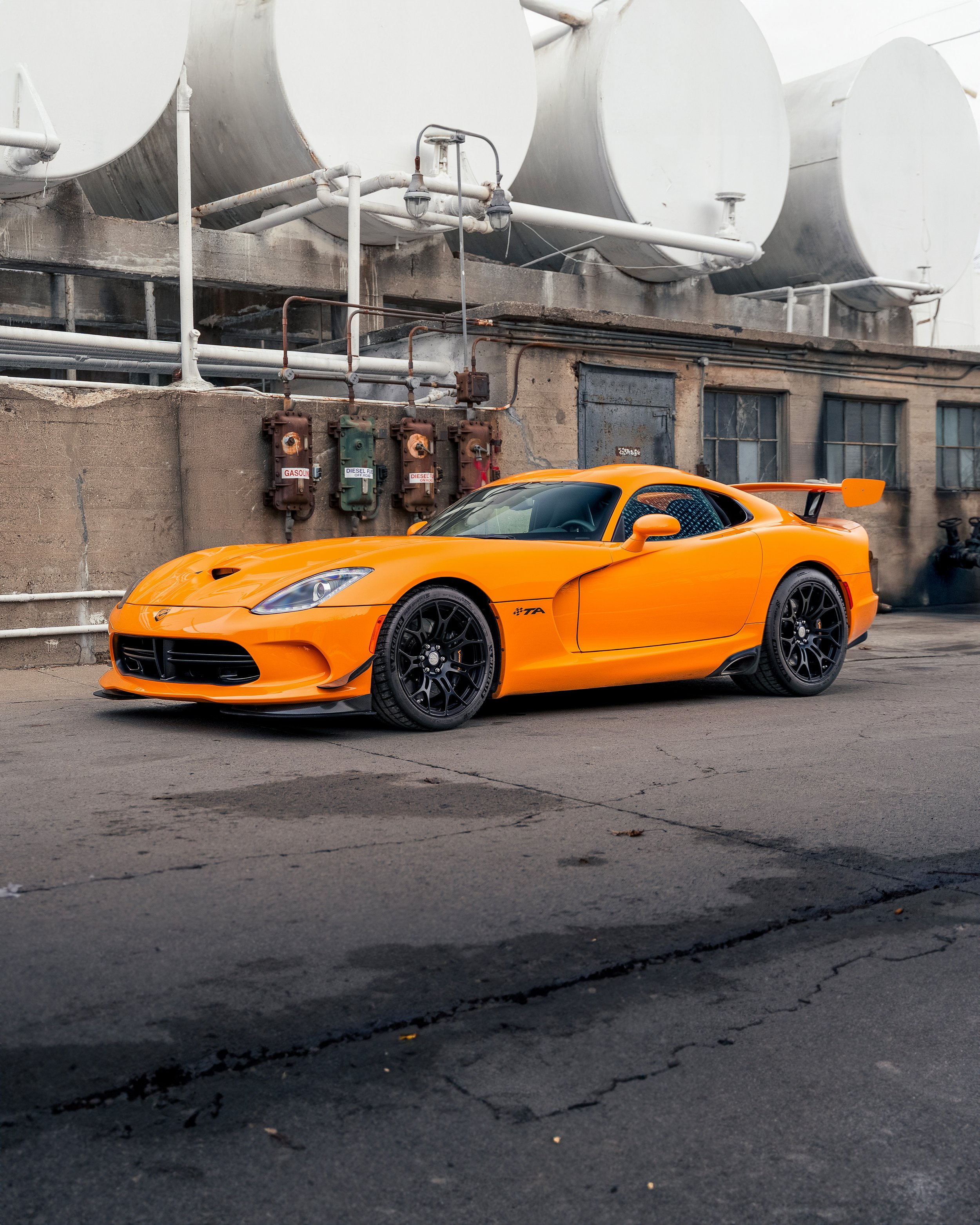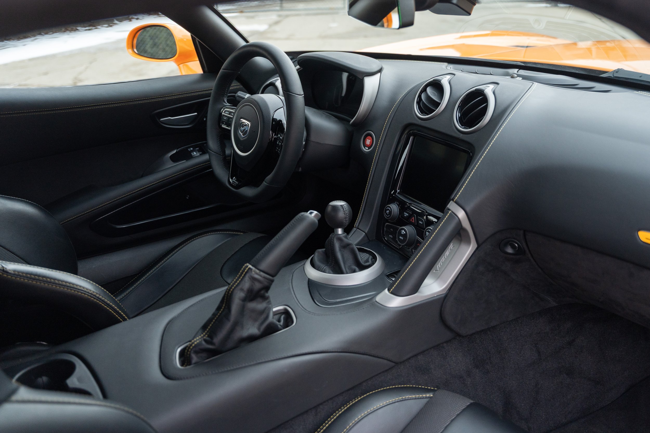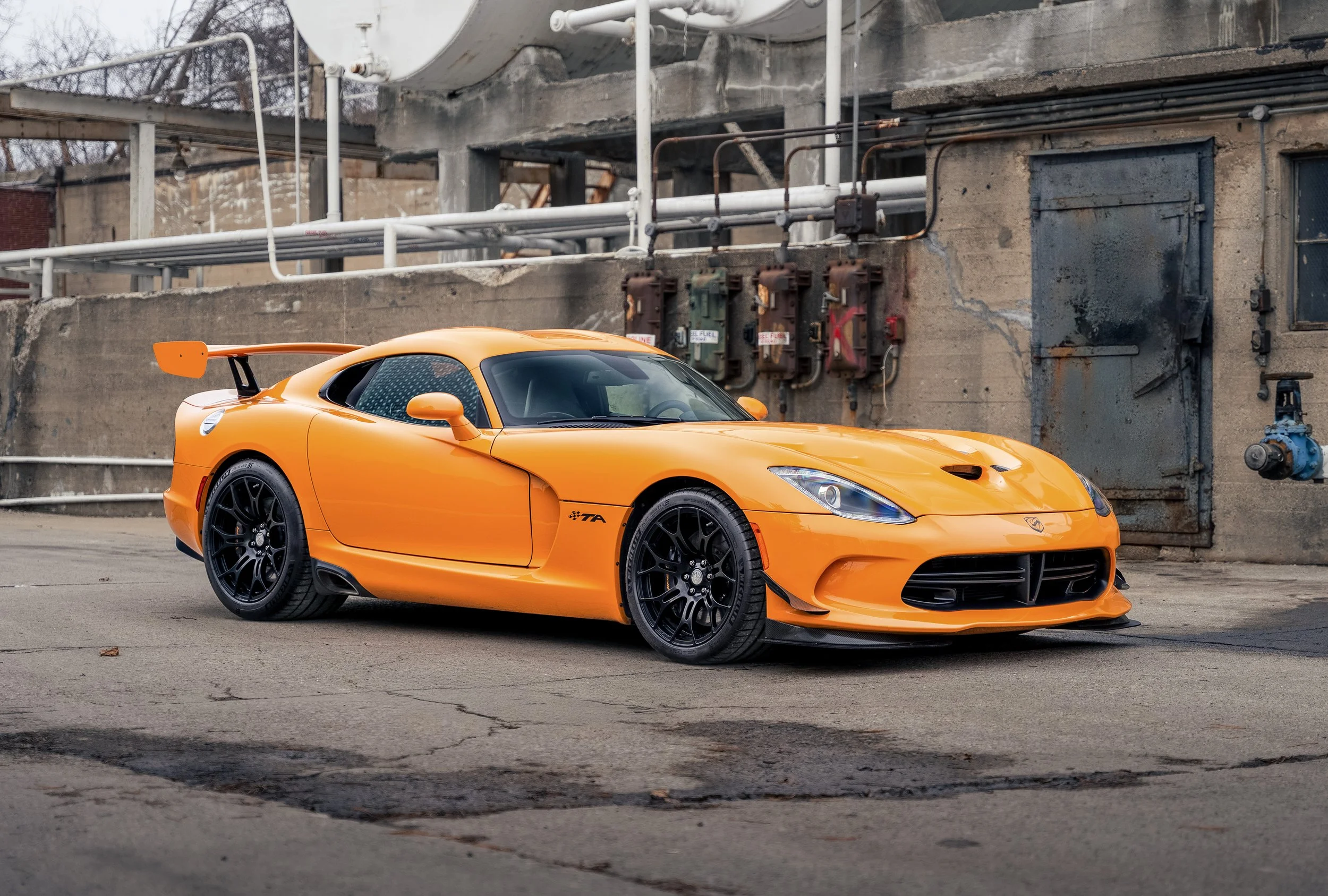 In 2013, Dodge unveiled what would be the final Viper generation, and it again stayed true to its original roots. A massive V-10 engine (this time 8.4 liters - and the most torque offered from a naturally aspirated engine at the time), no traction control, rear-wheel drive, and side-piped exhaust. Dodge also took advantage of modern materials improvements and used carbon fiber for the massive hood, roof, and trunk. All in, the final generation of viper weighed in right around the same as the 1996 GTS Coupe. In 2015, the Viper was introduced with an all-new limited edition model dubbed the “T/A 2.0”. This variant added a special aerodynamics package which included new front dive planes, carbon fiber splitter, and a large rear wing that added over 200lbs of downforce at 150mph. In addition to the aerodynamic bits the interior featured fiberglass racing seats and production was capped at 96 units, 32 of these units to be finished in Y’Orange.