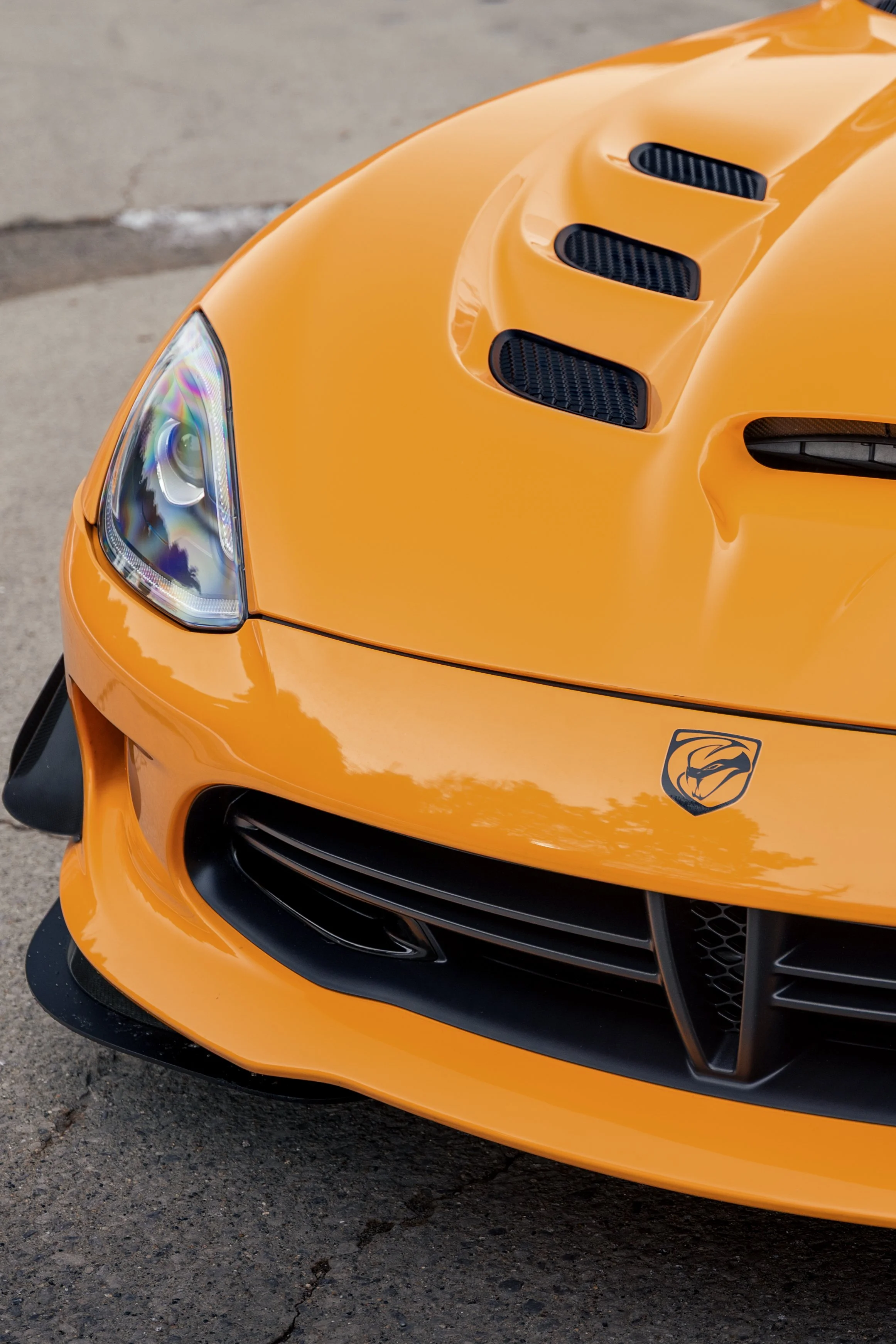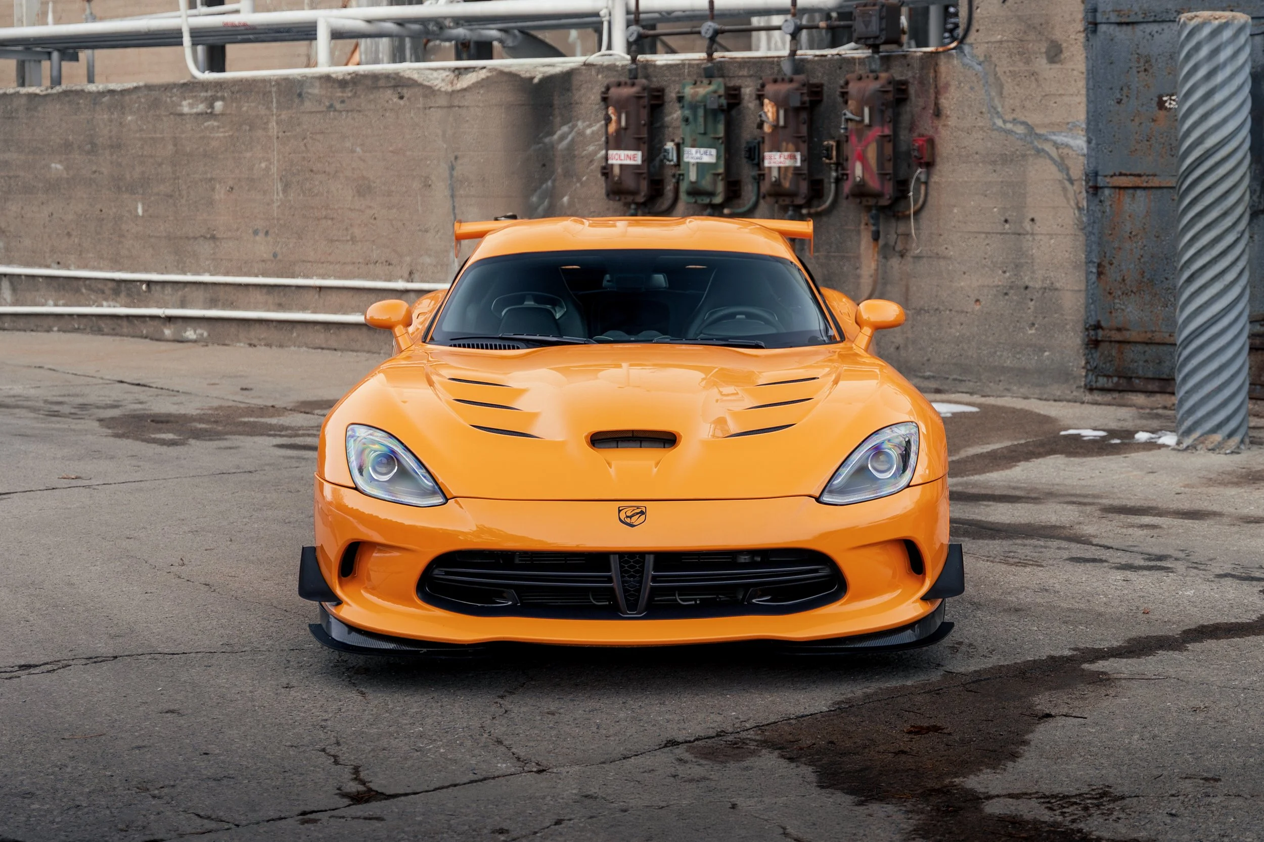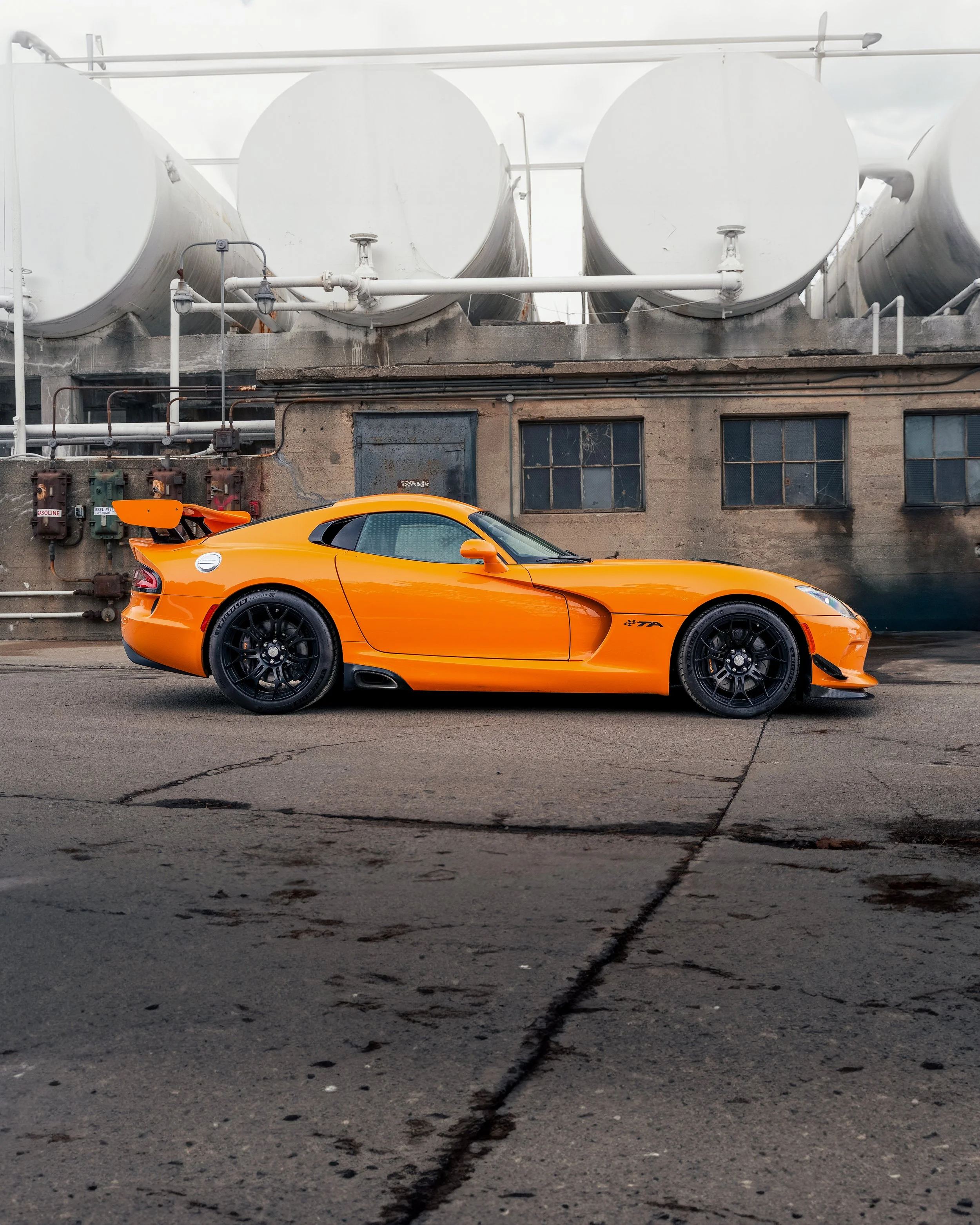 In 2013, Dodge unveiled what would be the final Viper generation, and it again stayed true to its original roots. A massive V-10 engine (this time 8.4 liters - and the most torque offered from a naturally aspirated engine at the time), no traction control, rear-wheel drive, and side-piped exhaust. Dodge also took advantage of modern materials improvements and used carbon fiber for the massive hood, roof, and trunk. All in, the final generation of viper weighed in right around the same as the 1996 GTS Coupe. In 2015, the Viper was introduced with an all-new limited edition model dubbed the “T/A 2.0”. This variant added a special aerodynamics package which included new front dive planes, carbon fiber splitter, and a large rear wing that added over 200lbs of downforce at 150mph. In addition to the aerodynamic bits the interior featured fiberglass racing seats and production was capped at 96 units, 32 of these units to be finished in Y’Orange.